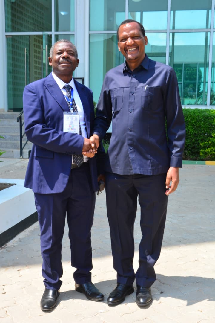 Prof. Preksedis Marco Ndomba, the Executive Director of NTWAM Water & Environment Initiative posing in a photo with Dr. John Jingu, the Permanent Secretary, Ministry of Community Development, Gender, Women and Special Groups during the Annual Non-Governmental Organizations Symposium (ANGOF 2025) Held at Jakaya Kikwete Convention Centre, Dodoma, between 11th and 13th August, 2025