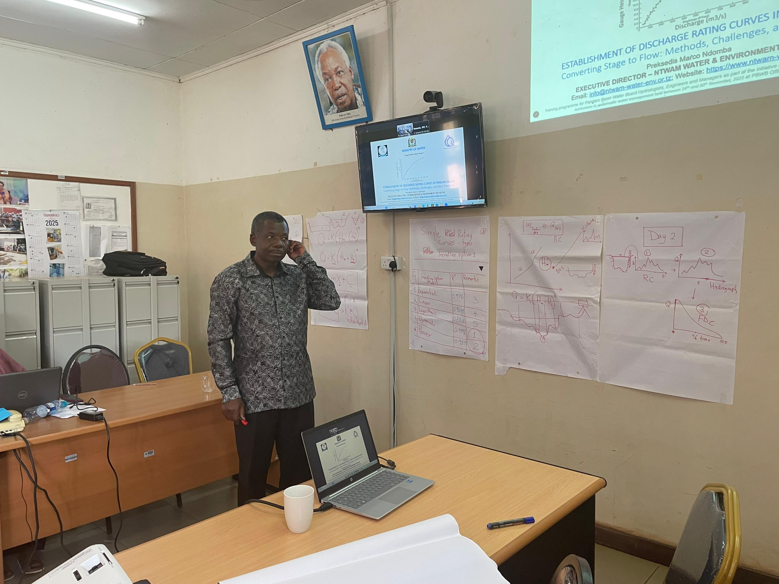 “PROF. PREKSEDIS M. NDOMBA, THE EXECUTIVE DIRECTOR OF NTWAM, LED A SPECIALIZED TRAINING COURSE ON RATING CURVE DEVELOPMENT FOR WATER PROFESSIONALS FROM PANGANI BASIN WATER BOARD. THE TRAINING TOOK PLACE AT PANGANI BASIN HQ IN MOSHI, KILIMANJARO REGION, FROM NOVEMBER 24-30, 2025”
